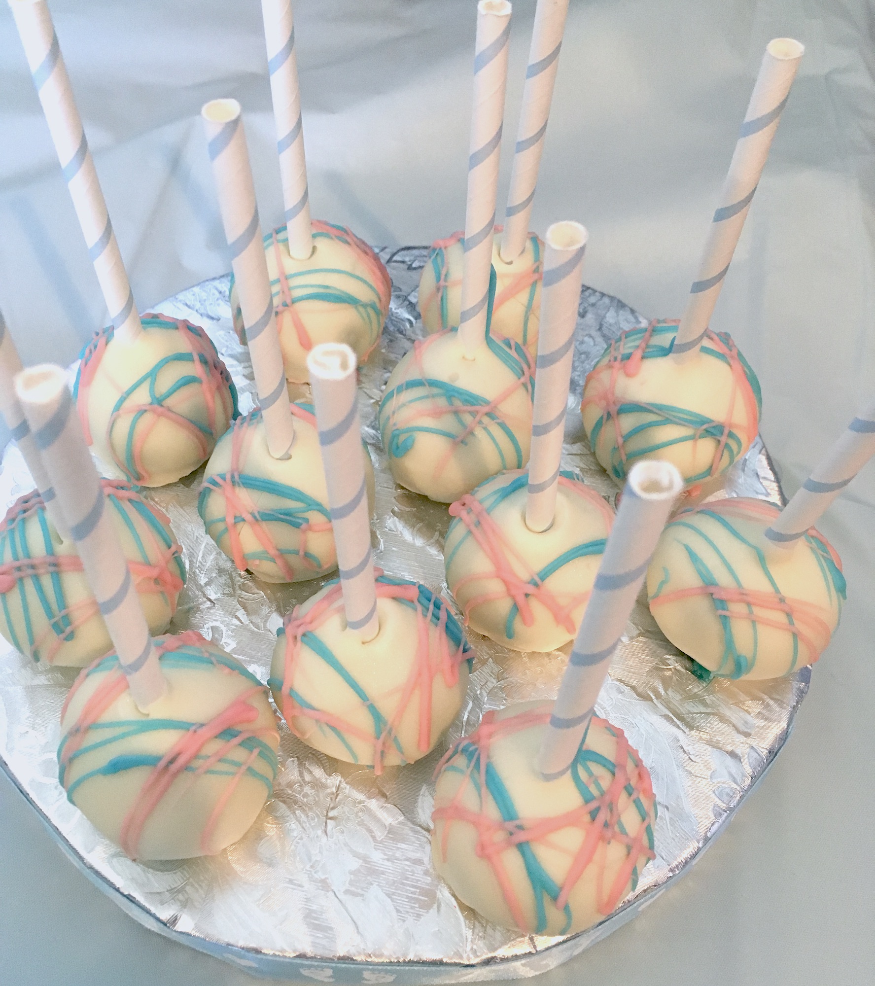 Cakepops for baby gender reveal party